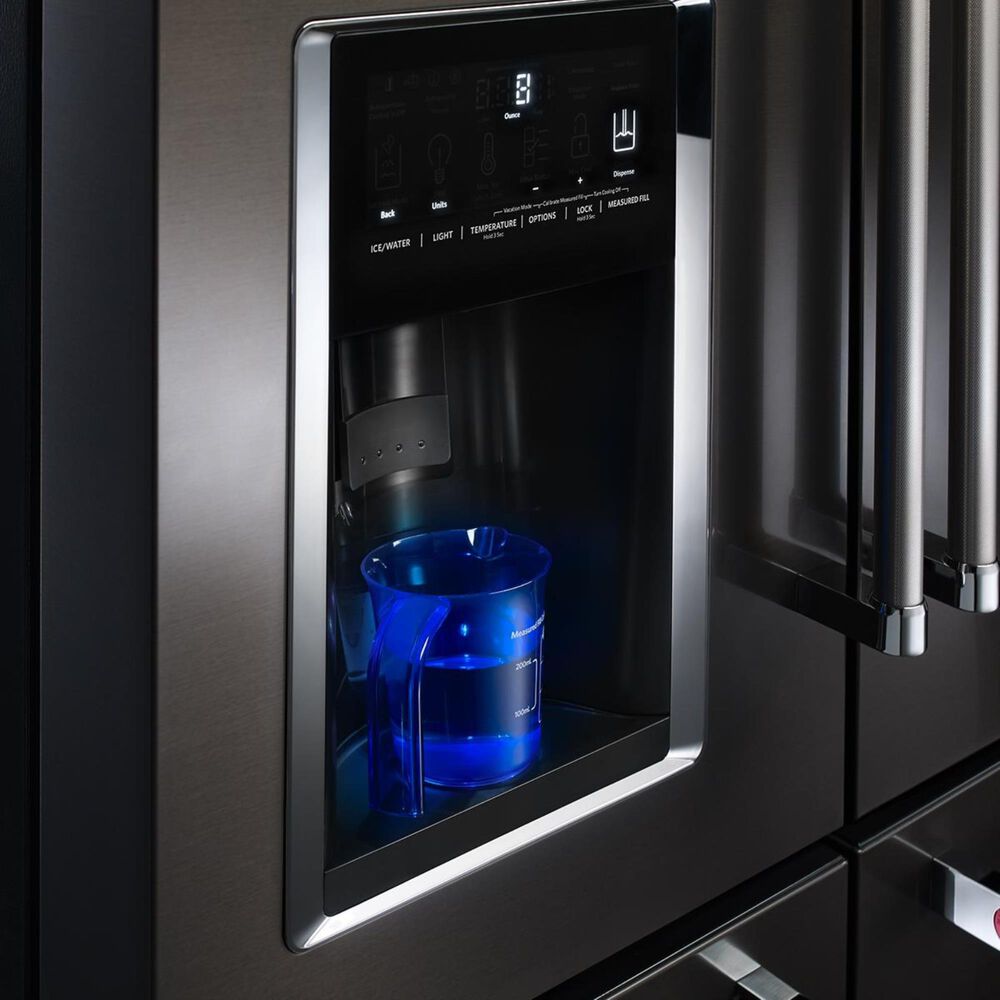 Kitchenaid 36 In 26 8 Cu Ft French Door Refrigerator With External Ice Water Dispenser Black Stainless Steel P C Richard Son